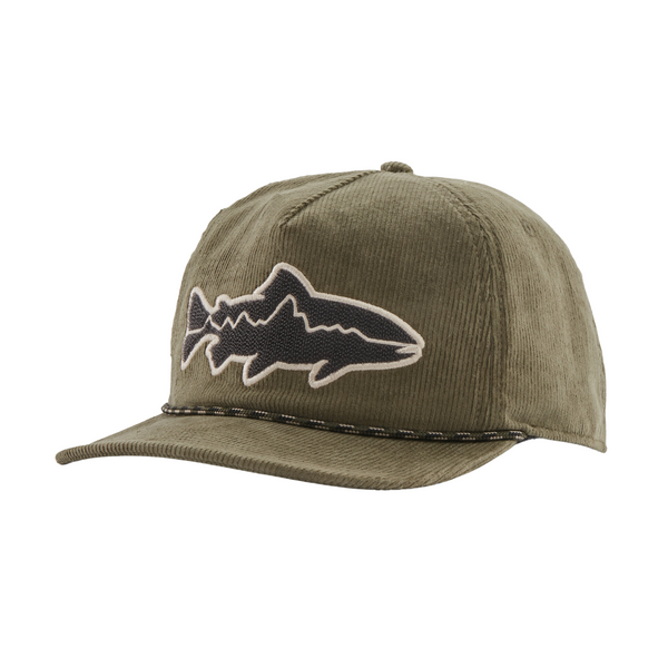 High-crown hat made of 100% organic cotton corduroy with a fly-catching and eye-catching front patch for holding your daily flies. Brim is made of NetPlus® 100% recycled fishing nets. Fair Trade Certified™ sewn.