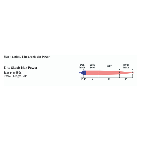 RIO Skagit Max Power heads cast the largest flies and the heaviest sinking tips with exceptional ease. The unique weight distribution deeply loads rods for long casts while the powerful front taper delivers enough punch to turn over all the weight you need to get the fly into the strike zone. Shorter head lengths make the Max Power the perfect choice for shorter rods or when space behind the caster is limited. The low stretch core gives incredible levels of sensitivity when casting and fishing, and provides enhanced detection of takes, more positive hook sets, and far greater control when playing a fish.