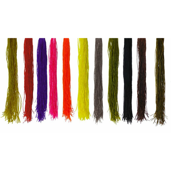 Flex-Floss comes in a hank about 8 inches long with 100+ pieces. It is used for bodies or as legs on many flies. Its relatively thin, strong , light and can be stretched. The big advantage it that is resists rot unlike normal rubber. We use it on our chironomids, emergers, and as a rib on adult stoneflies.. A great tying material.