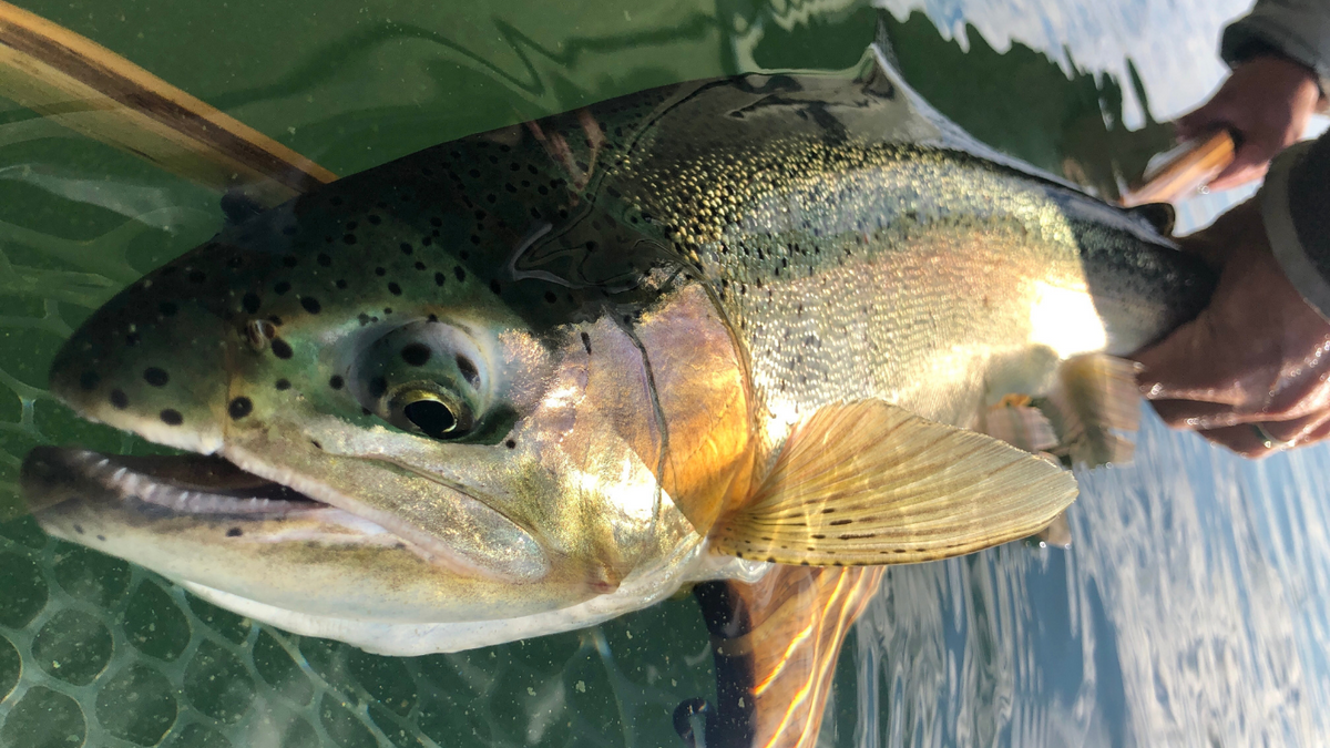 The predominant food sources are damsels, callibaetis, chironomids, leeches, caddis, and ants. These are well-fed fish to be sure. Because there are so many varieties of food, there are several ways to approach the lake with a fly rod on any given day. That’s where Fly and Field Outfitters comes in. Crane Prairie is not a lake to approach “blindly”. You must have some flotation, and at first glance, she gives up no secrets. The channels are unseen until you row or motor over them and the fish can be awfully spooky. The bugs need to be just right and fished the correct way in productive water. But fear not! If you have some stillwater experience, we will show you the right flies and gear to accomplish your goals.