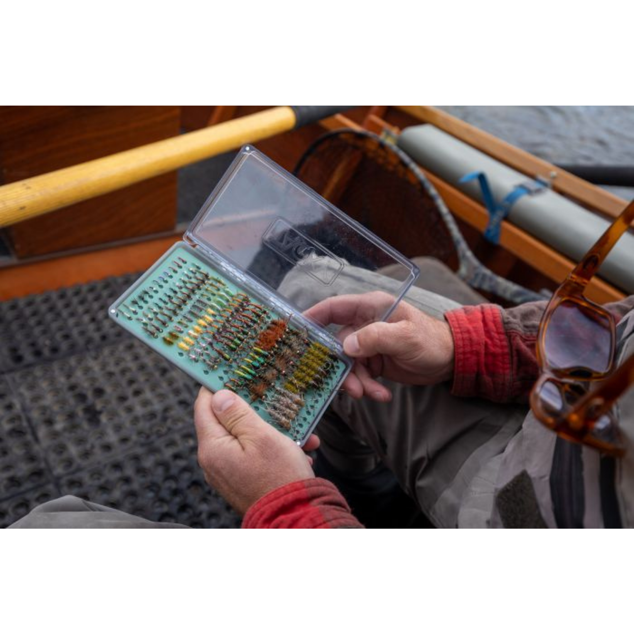 2X: Enter the 2X, sporting all the game-changing features of the Original Box with double the space. Whether you are looking to guide out of a single storage system, or simply don’t want to be caught without a full complement of wet flies, the Original 2X offers a tremendous carry capacity in a slim profile. The highly durable, recycled polycarbonate box will not warp under pressure or extreme temperatures and stays tightly closed in your vest or pack with our signature latchless magnetic closure.